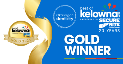 We’re honoured to share that Okanagan Dentistry has been awarded Gold in the Best of Kelowna 2025 – Dentist category! This recognition means the world to us because it comes from you—our patients and community. Your trust and support inspire us every day to make a difference through compassionate, high-quality dental care. At Okanagan Dentistry, we believe a healthy smile builds confidence, comfort, and joy, and we’re proud of our incredible team who make that possible. Thank you for your votes and for allowing us to care for your smiles!